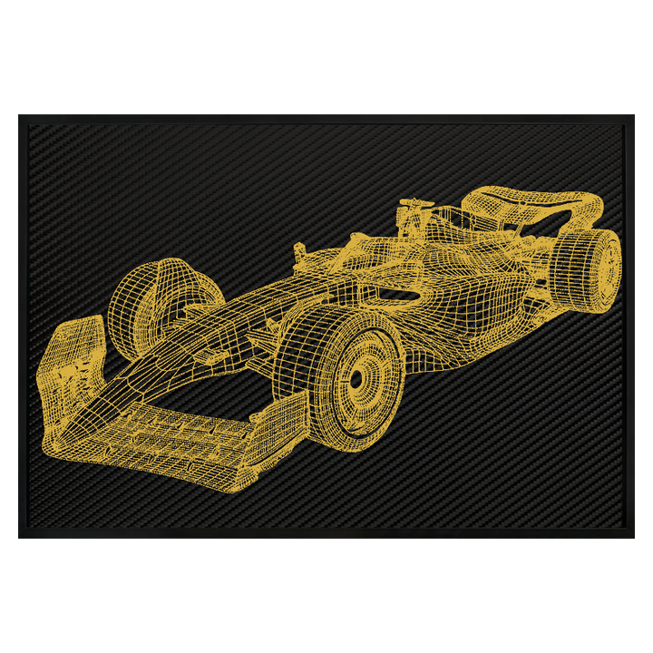 Wandkunst im Stil eines Formel-1-Rennwagens aus Carbonleder: Gestickte Stiche