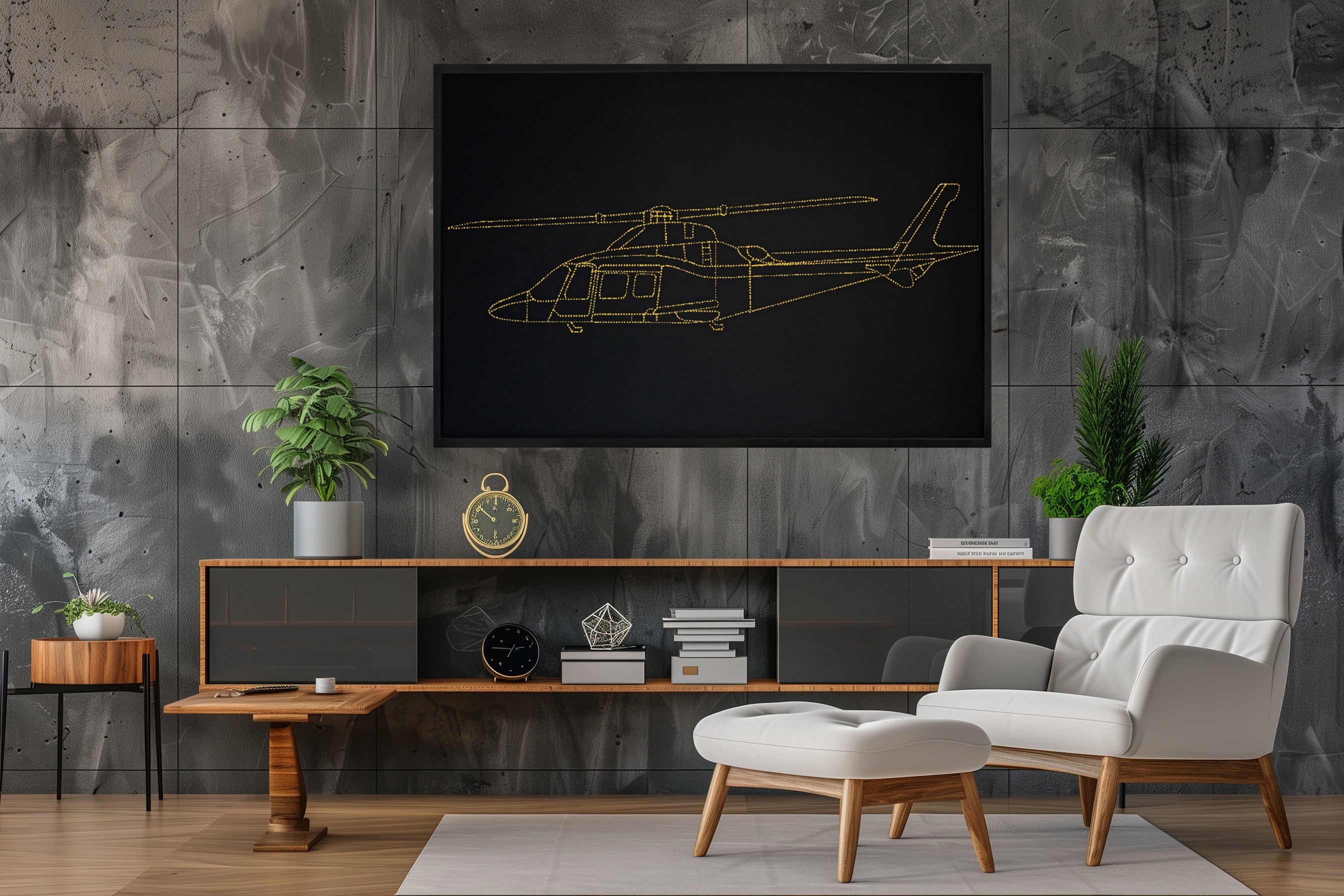 Wandkunst inspiriert vom Hubschraubermodell AW109 aus Carbonleder: Gestickter Stich #5647