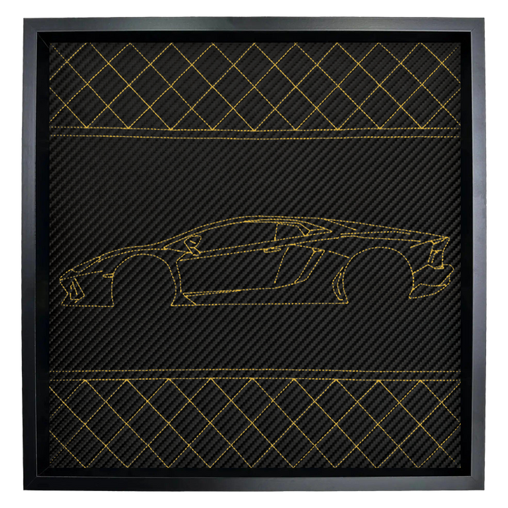 Wandkunst im Huracan-Stil aus Carbonleder: Luxus-Stickereien