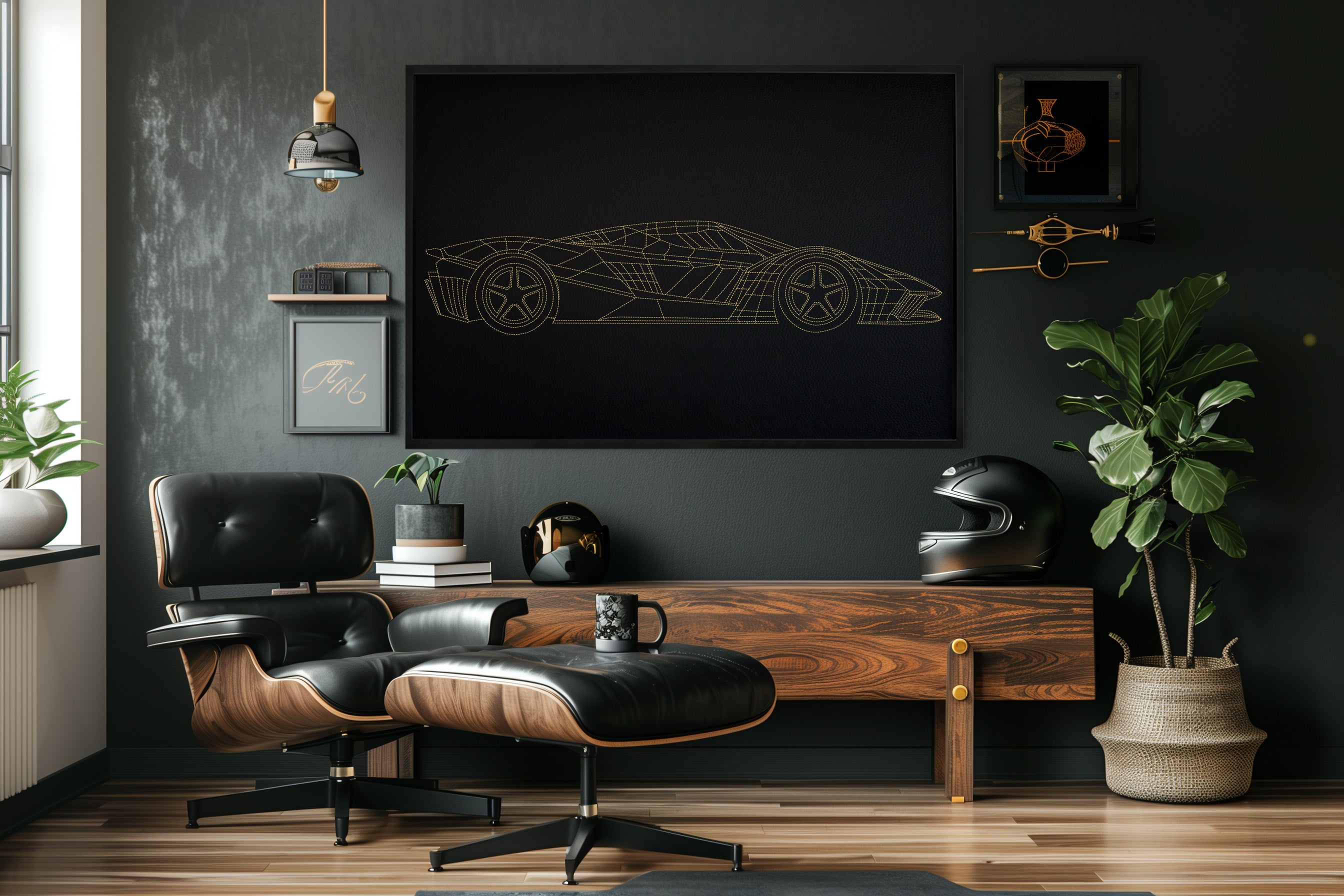 Luminara Supercar inspirierte Wandkunst aus Carbonleder: Gestickte Stiche