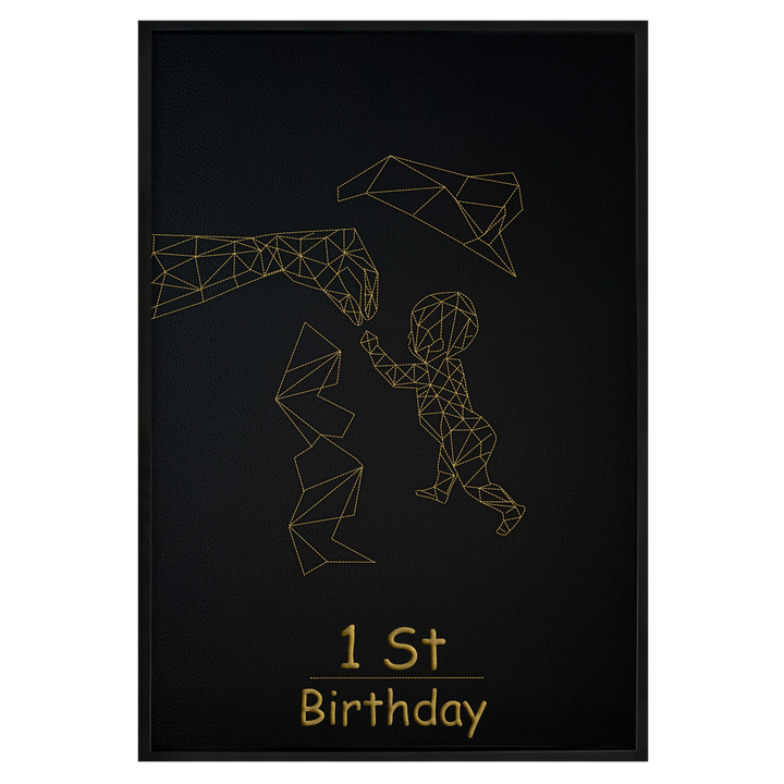 Wandkunst zum 1. Geburtstag des Babys aus Leder: Gestickter Stich
