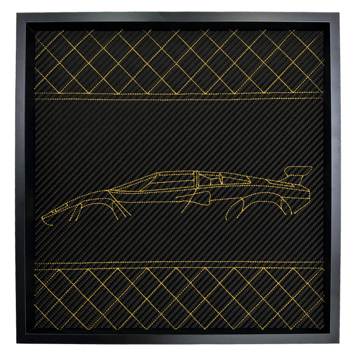 Wandkunst im Countach-Stil aus Carbonleder: Luxus-Stickereien