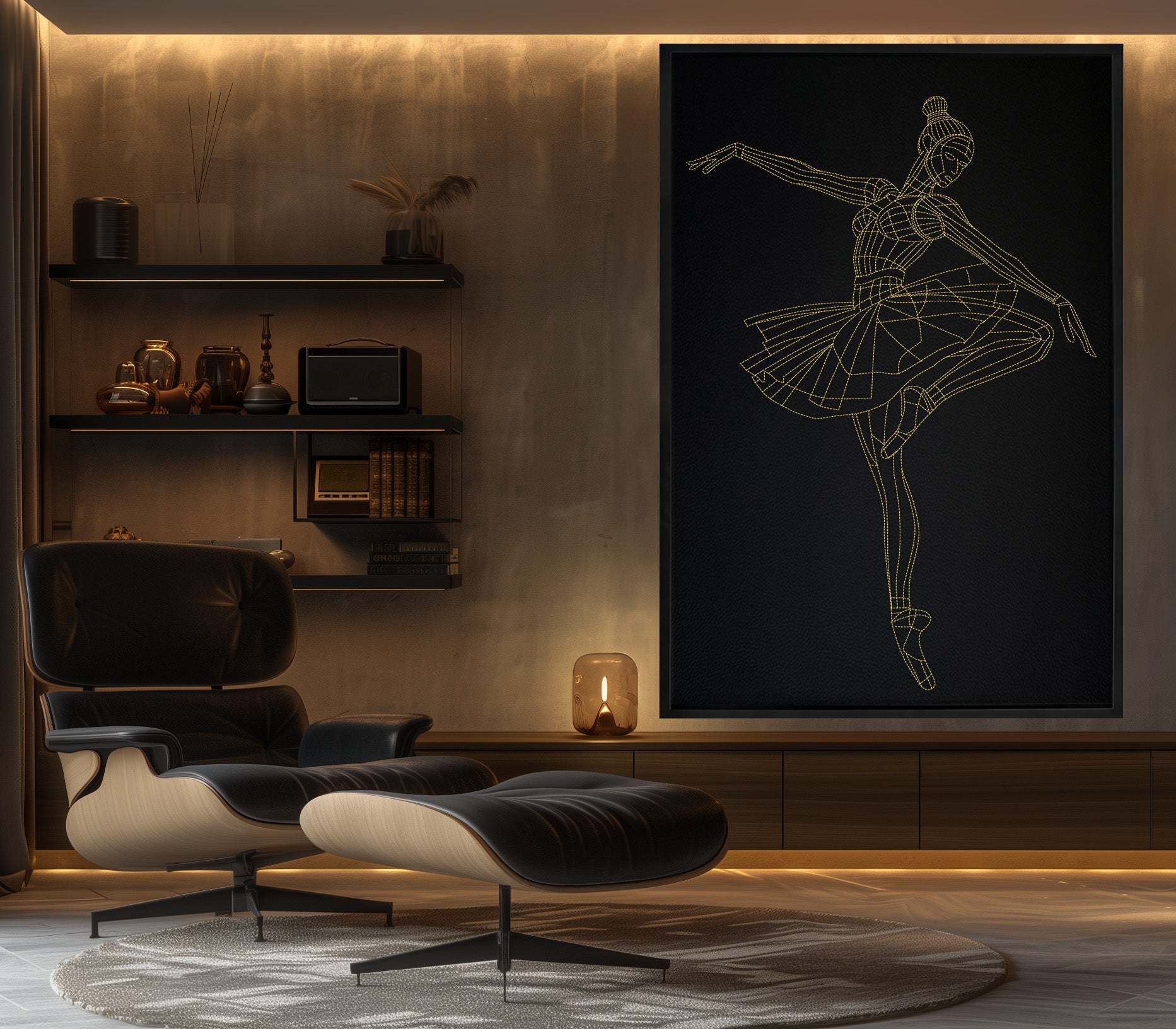 Von Choreografen inspirierte Wandkunst aus Leder: Gestickte Stiche