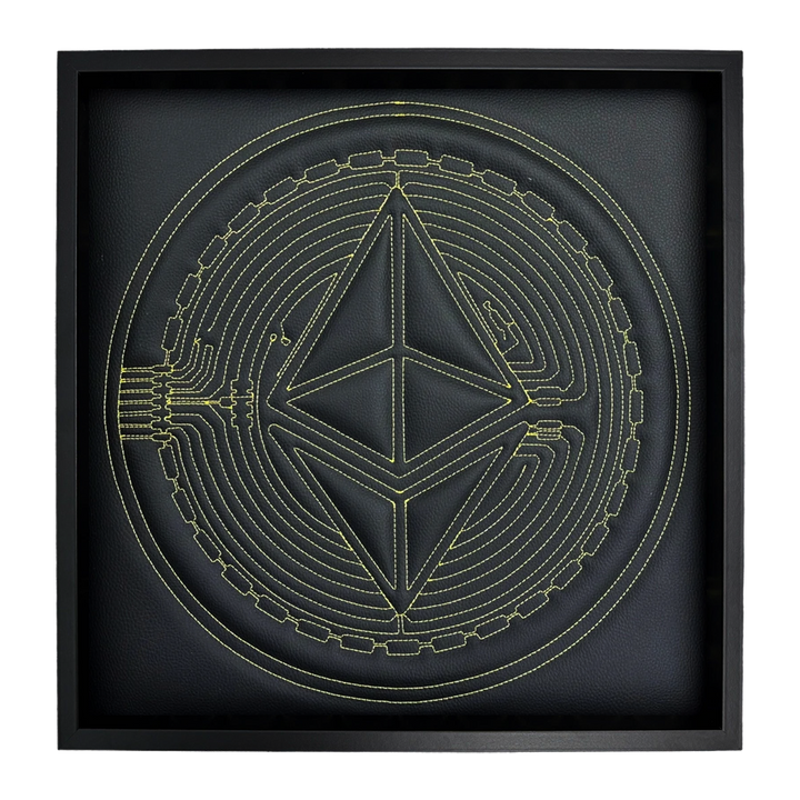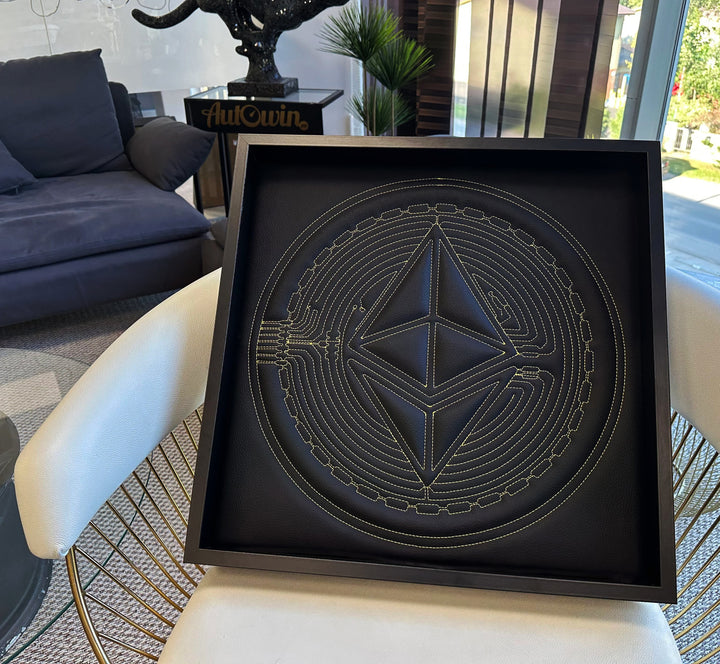 Von Ethereum inspirierte Wandkunst aus Leder: Gestickter Stich