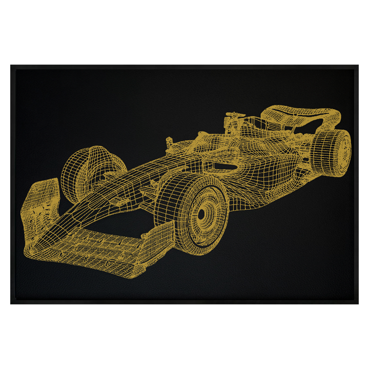 Wandkunst aus Leder im Stil eines Formel-1-Rennwagens: Gestickte Stiche