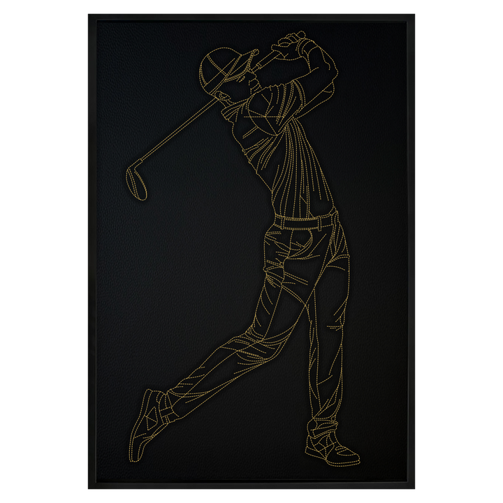 Wandkunst aus Leder, inspiriert von Golfspielern: Gestickte Stiche