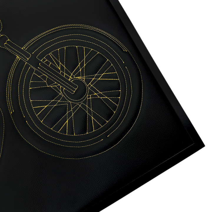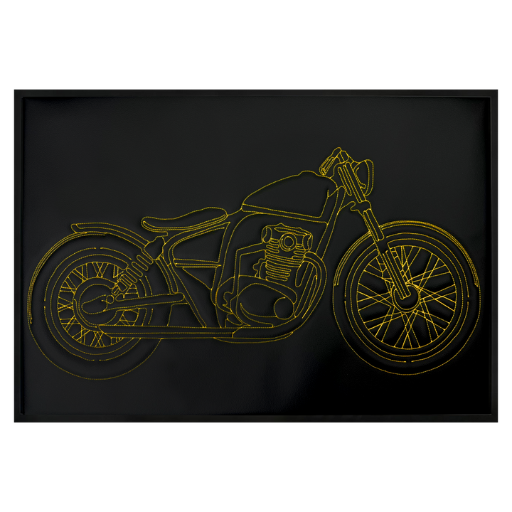 Wandkunst im Leder-Motorrad-Stil: Gestickte Stiche