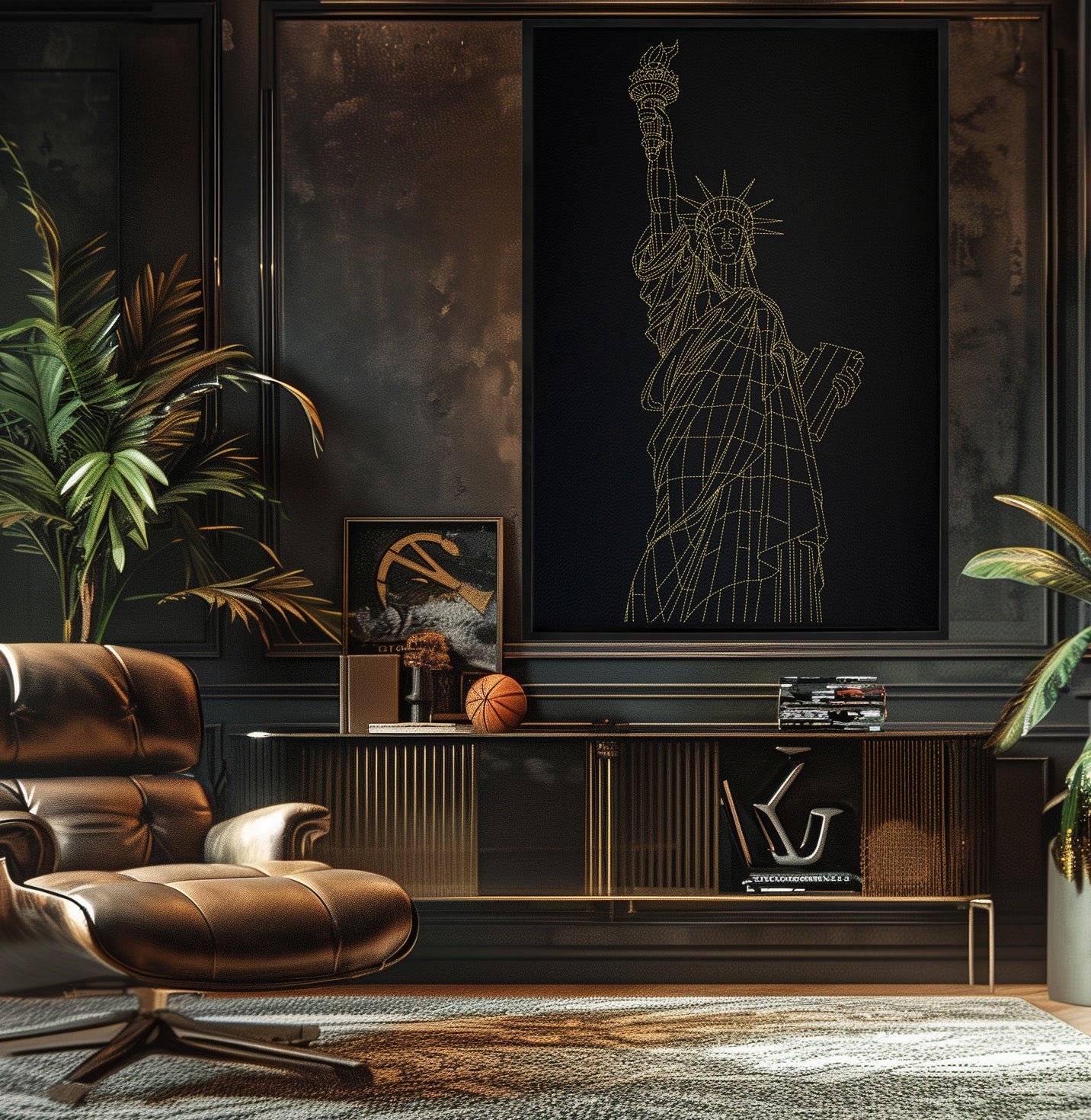 Wandkunst aus Leder, inspiriert von der Freiheitsstatue: Gestickte Stiche