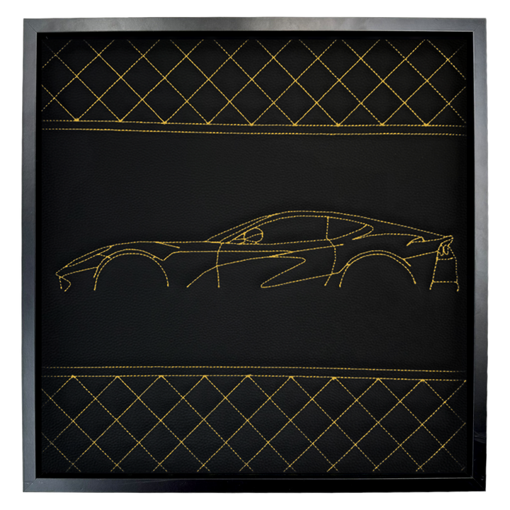 Arte de pared inspirado en el superdeportivo Luminara de cuero de carbono: puntada bordada