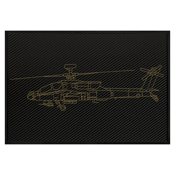 Arte de pared inspirado en Apache AH 64D en cuero de carbono: puntada bordada