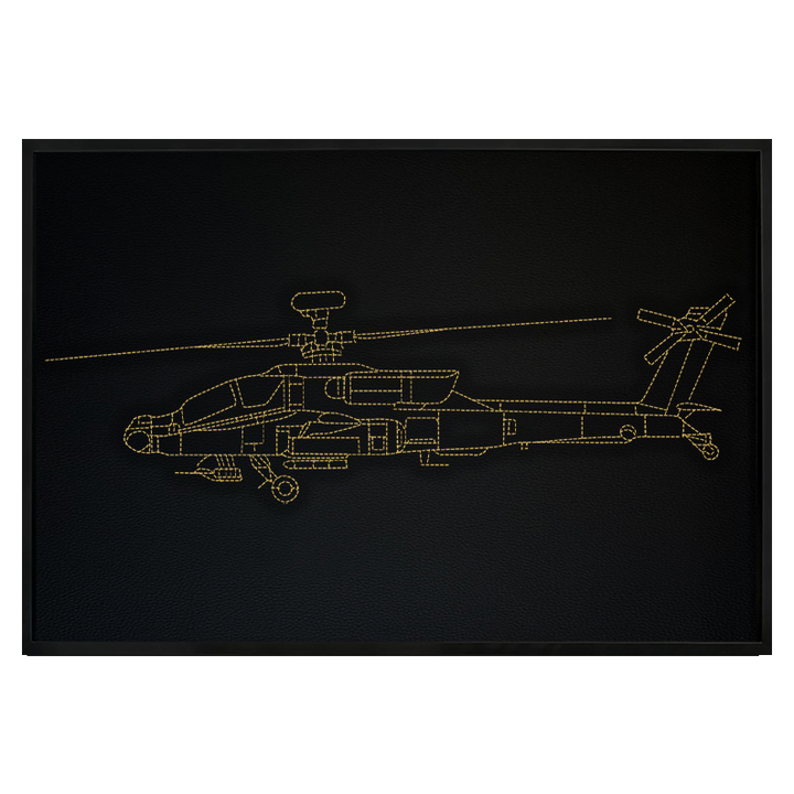 Arte de pared inspirado en Apache AH 64D en cuero: puntada bordada