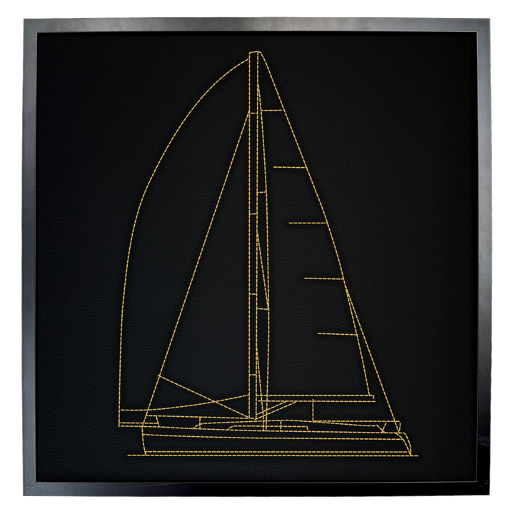 Arte de pared inspirado en el Bavaria Cruiser 56 en cuero: puntada bordada