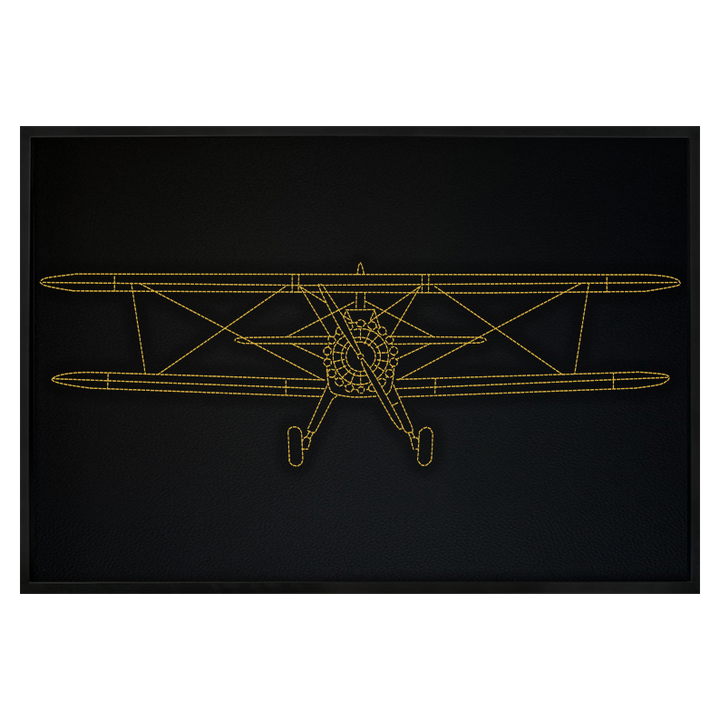 Arte de pared inspirado en la silueta frontal de un Stearman de cuero: puntada bordada