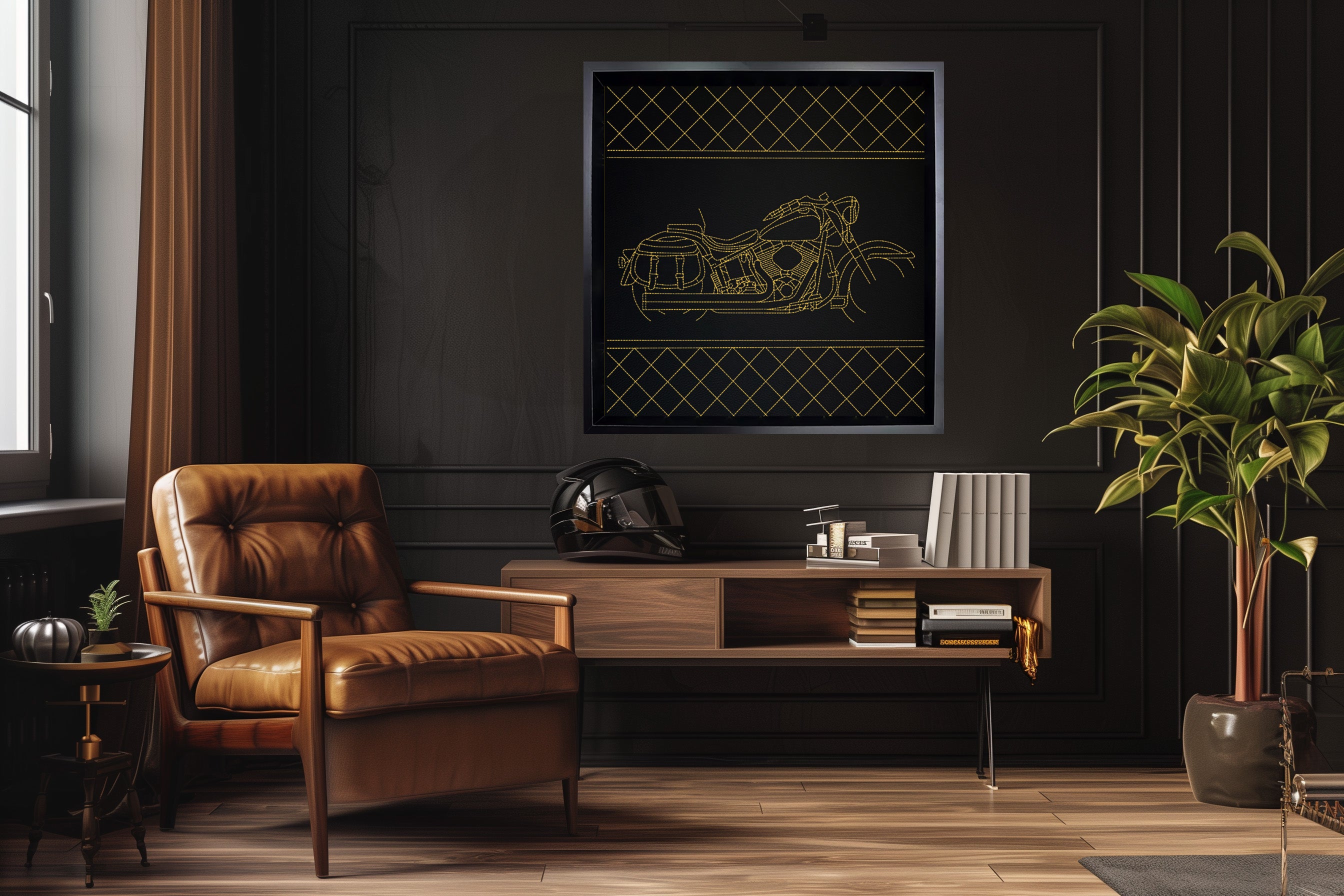 Carbon Leather Heritage Classic 1944 Inspired Wall Art: Embroidered Stitch