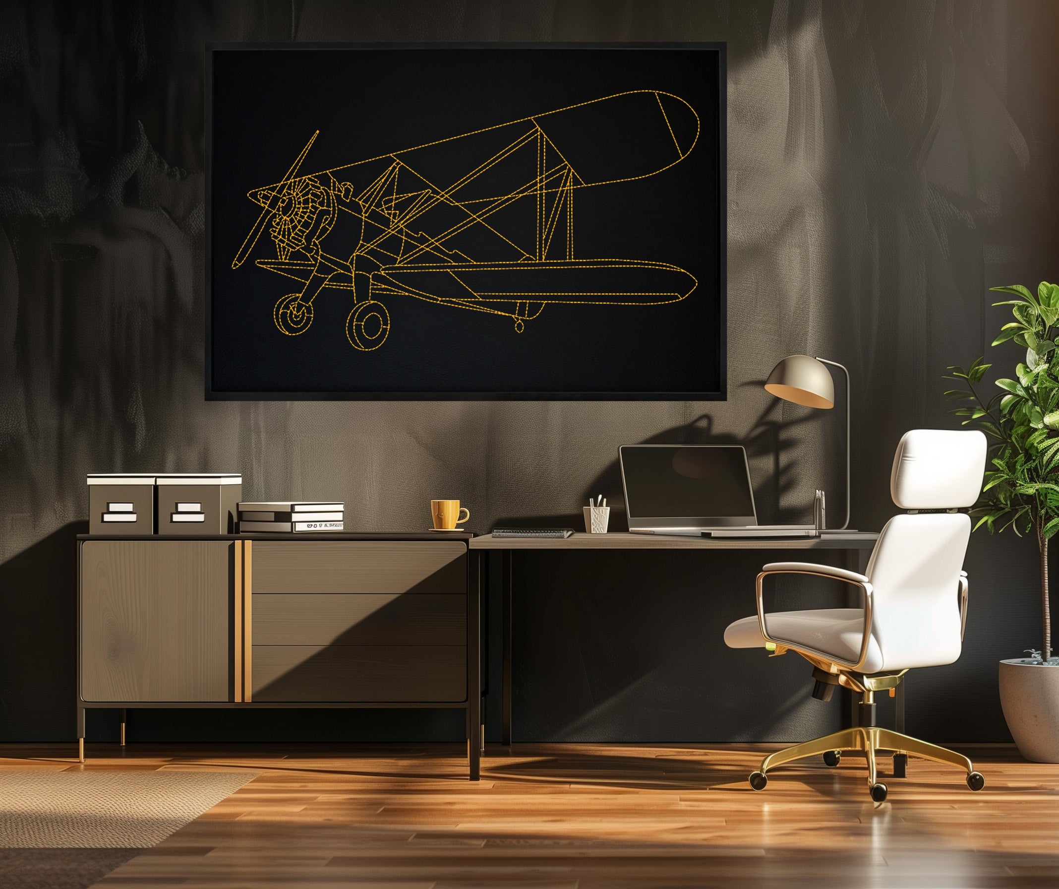 Carbon Leather Stearman 75 Inspired Wall Art: Embroidered Stitch