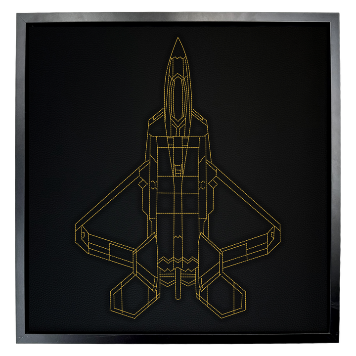 Leather F-22 Raptor Top Silhouette Model Inspired Wall Art: Embroidered Stitch
