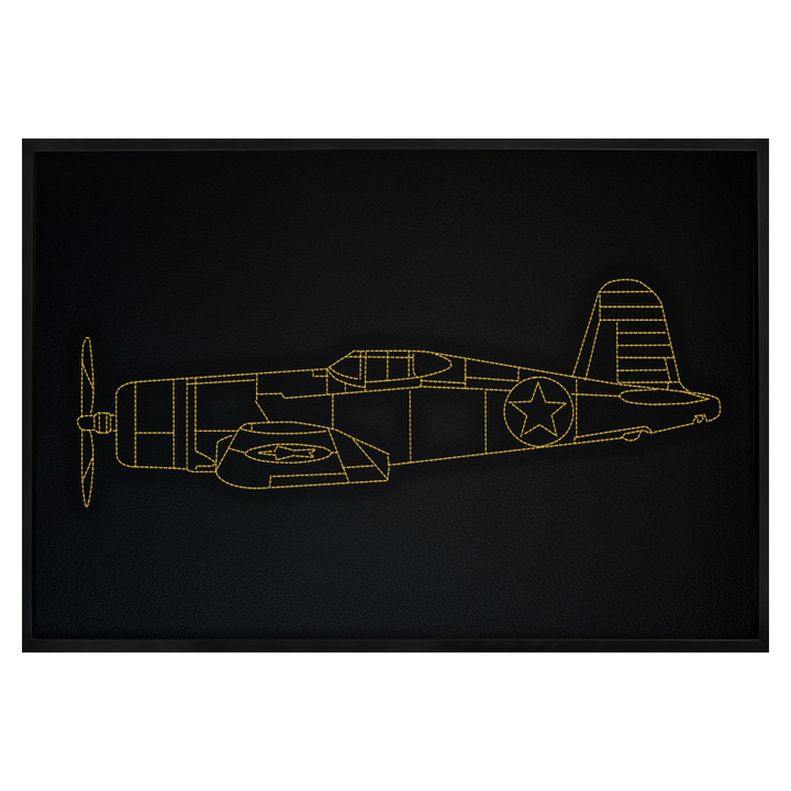 Leather F4U Corsair Inspired Wall Art: Embroidered Stitch