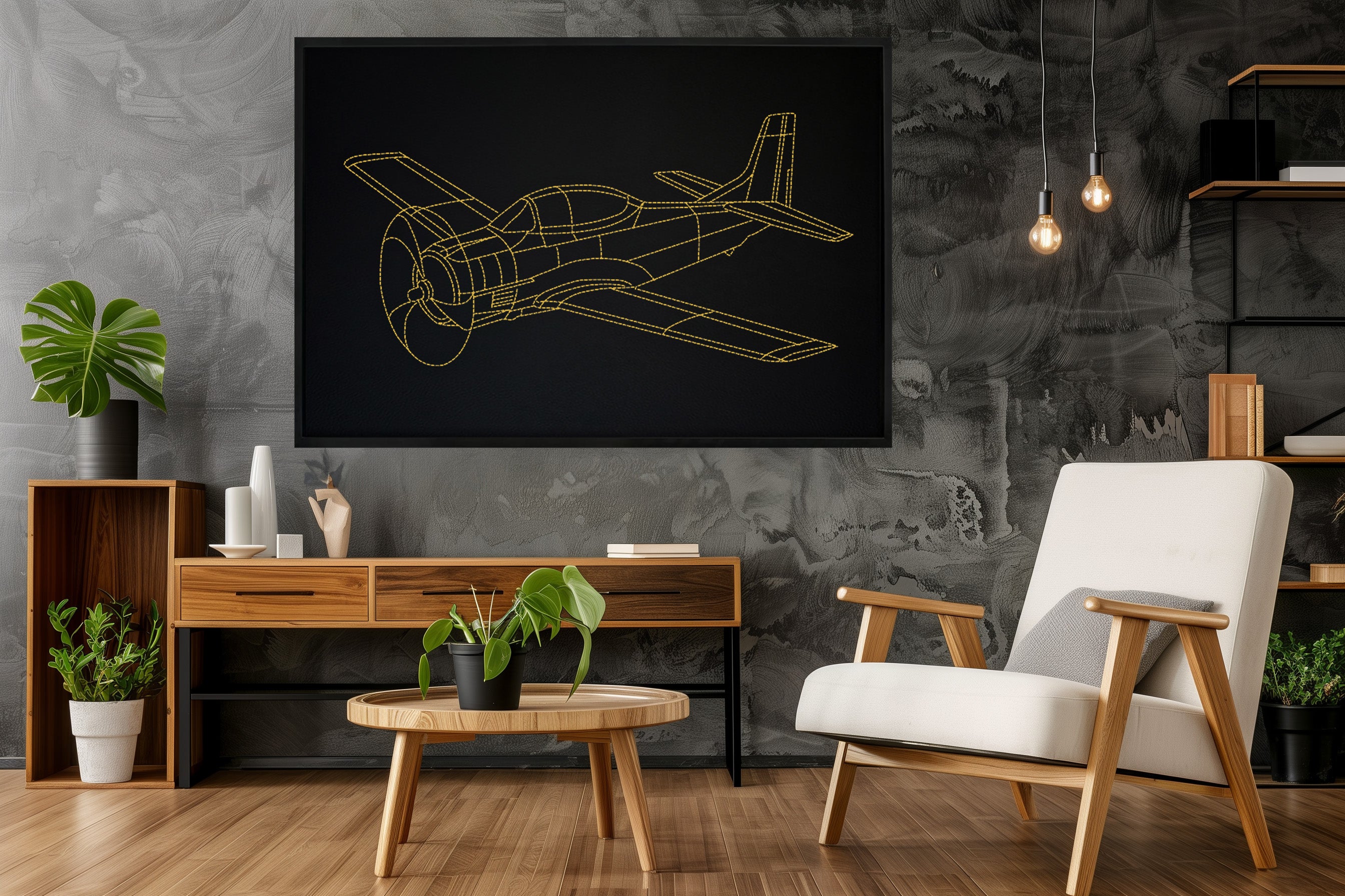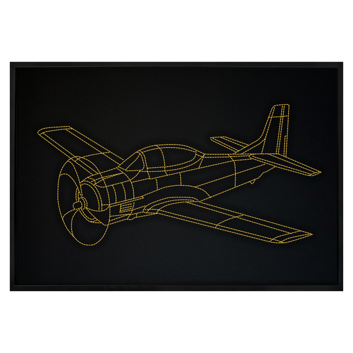 Leather T-28 Trojan Inspired Wall Art: Embroidered Stitch